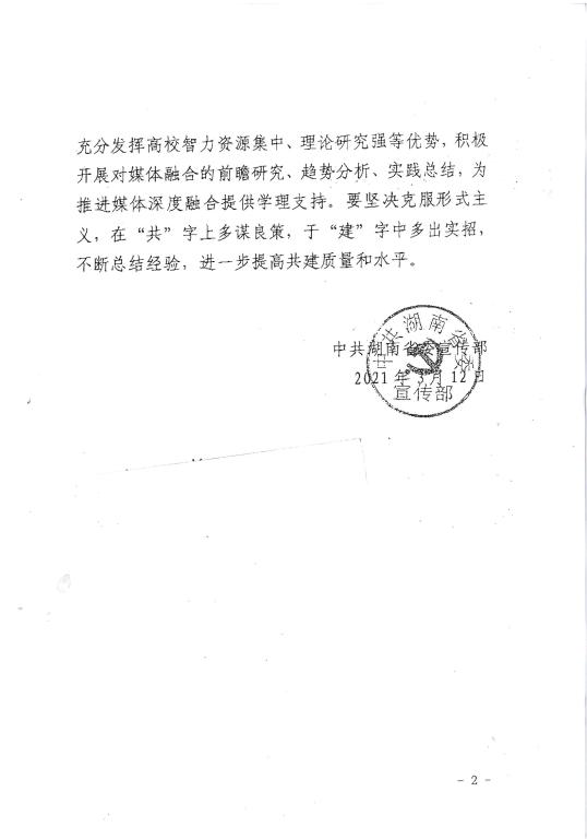 3月12日,湖南省委宣传部下发《关于同意304永利集团官网入口纳入部校共建新闻学院计划的复函》,决定将304永利集团官网入口文学与新闻传播学院纳入部校共建新闻学院行列。