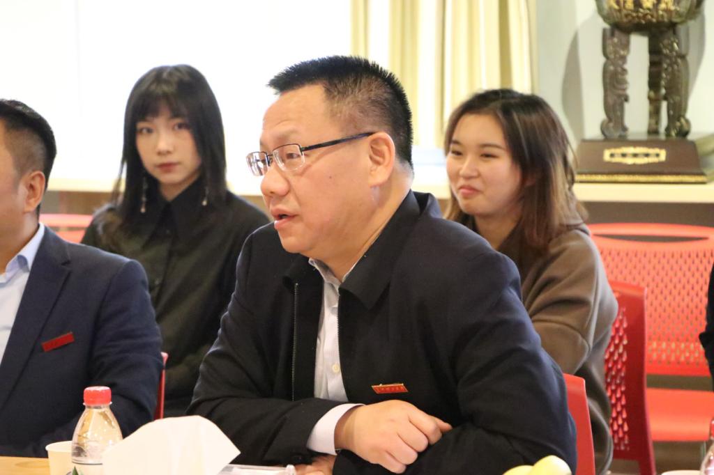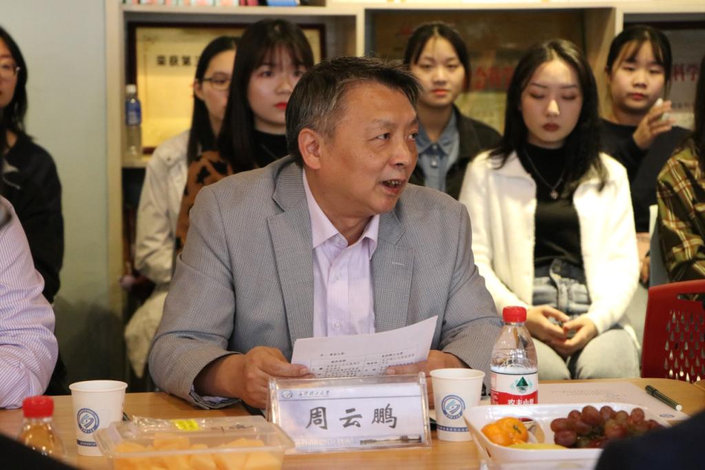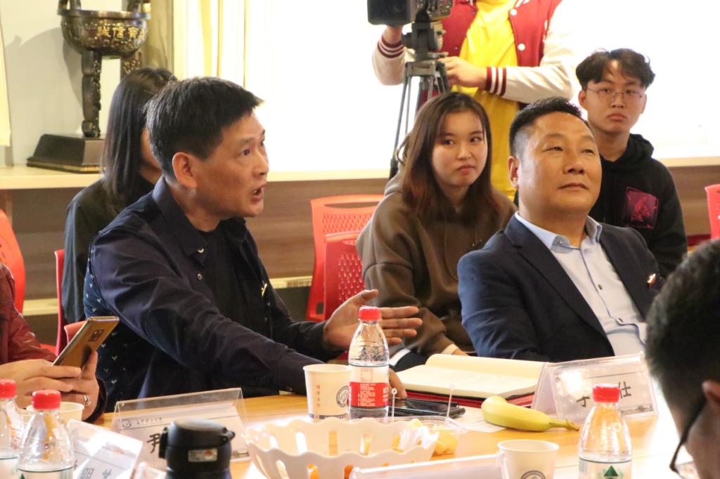 座谈会上,周云鹏为大家介绍各位校外导师。同学们热烈欢迎各位导师的到来,并向导师们送花表达诚挚的感谢。