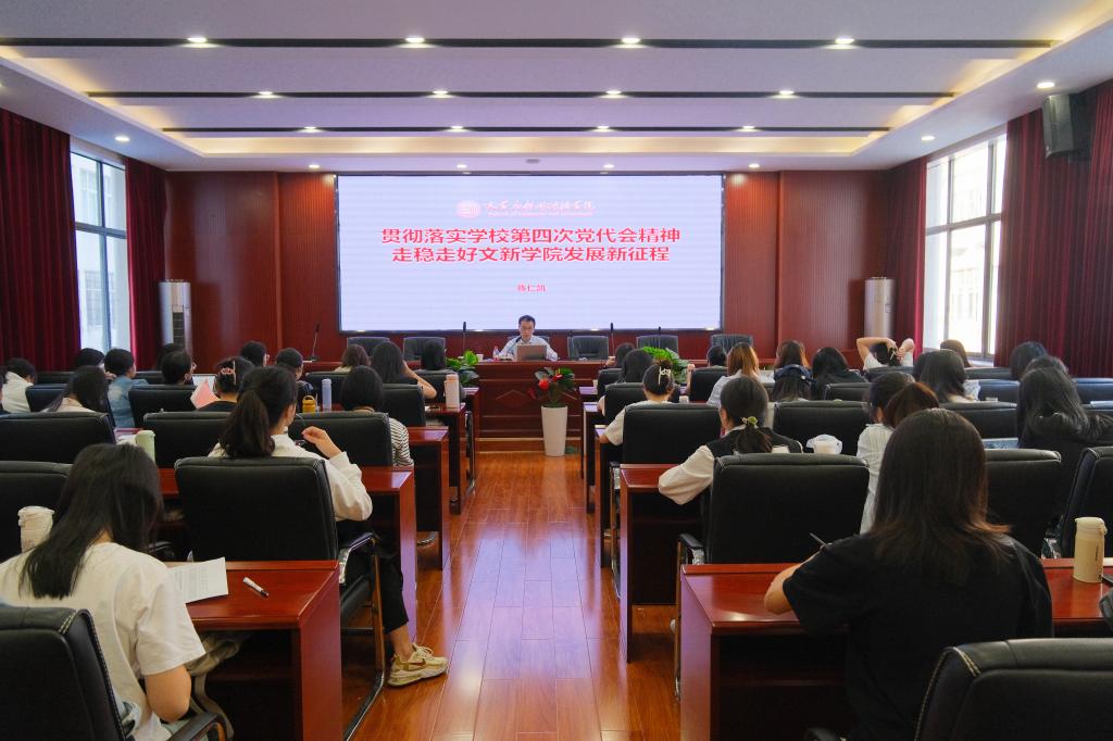 为深入学习党的二十大、贯彻中国共产党304永利集团官网入口第四次代表大会会议精神,10月18日上午,文学与新闻传播学院党委书记陈仁凯围绕“贯彻落实学校第四次党会精神,走稳走好文新学院发展新征程”这一主题为23级全体研一新生讲授了一堂生动的专题党课,进一步强调我院研究生学生做“人格正、思辨深、文采好、实践强”的新时代文化与传播人才。