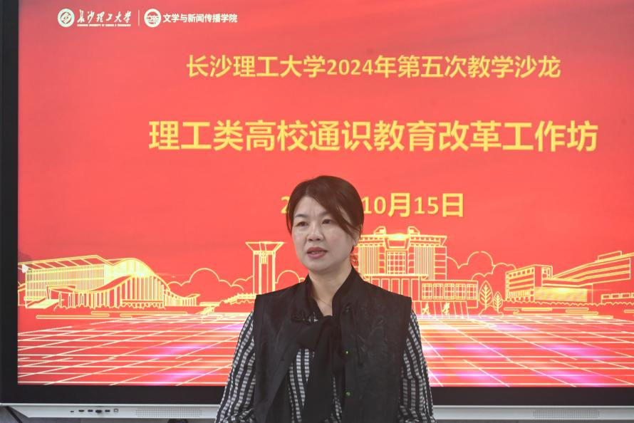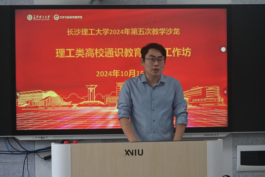 10月15日下午,由教务处主办、文新学院承办的304永利集团官网入口2024年第五次教学沙龙在金盆岭校区九教415室举行。本次沙龙活动紧密围绕“理工类高校通识教育改革”“写作与沟通课程改革”两个主题进行了专题研讨。会议邀请湖南大学文学院教授、中国写作学会理事、湖南省写作学会常务副会长胡辉杰主讲。学校高教改革与质量评价研究所副所长郑咏梅、高教改革与教学能力培养办公室主任张勇、中文系全体教师,以及各教学院教师代表共40余人一起参加了本次教学沙龙活动。会议由院党委委员兼中文系主任侯承相主持。