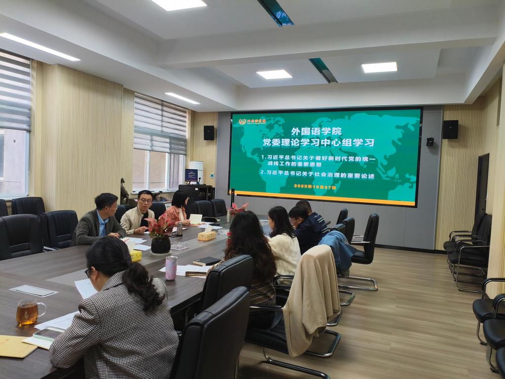 10月27日上午,外国语学院党委理论学习中心组在学院214会议室开展集中学习研讨。
