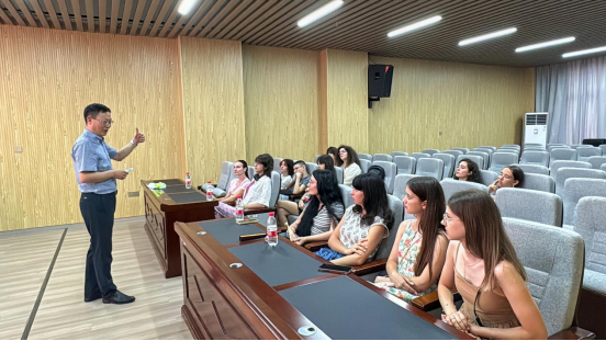 讲座在段胜峰院长与营员的互动交流中展开。段院长以“学习中文的经历”为切入点,邀请营员分享语言学习感悟,营员们积极参与,展现出对文化交流的热切期待。地理知识讲解环节,段院长通过中黑两国地图对比与自然风光影像,系统阐释中国地理特征。他以“西高东低三级阶梯”为框架,结合长江流域生态保护、青藏高原气候多样性等案例,剖析中国地形对资源分布与文化演进的影响。在政治社会发展板块,段院长以数据图表呈现中国近几十年教育投入增长轨迹,强调教育普及对经济转型与社会进步的推动作用。湖湘文化专题中,段院长以“敢为天下先”精神为主线,结合湖南近代革命史与当代科技创新成果,阐释湖湘精神的时代内涵,引发营员深入思考。