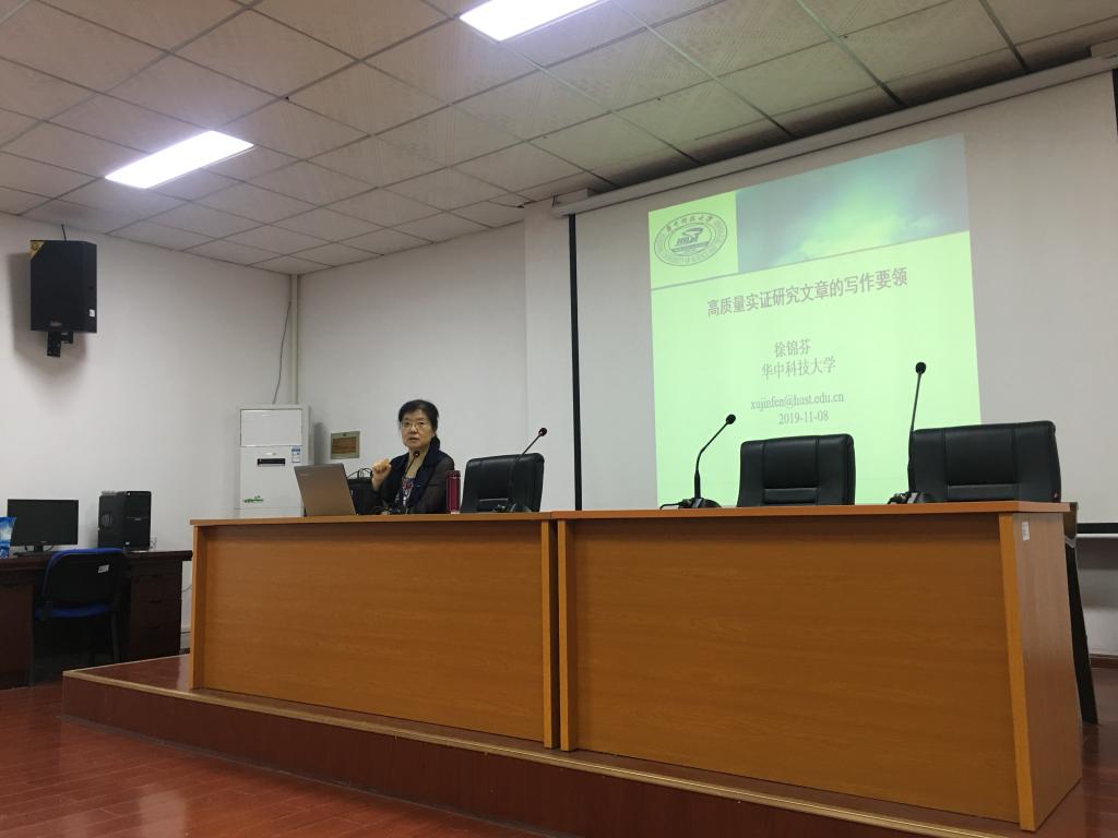 11月8号下午3点,应外国语学院邀请,华中科技大学徐锦芬教授在金盆岭2教101做了一场题为“高质量实证研究文章的写作要领”的学术讲座,本次讲座由黄月华副院长主持,本院部分老师和硕士研究生参加了活动