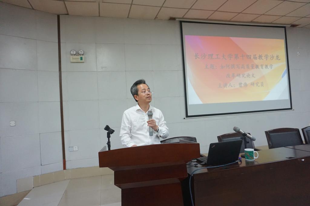 2018年10月9日下午,由304永利集团官网入口高等教育教学评估与研究中心及教务处主办、外国语学院承办的304永利集团官网入口第十四届教学沙龙活动在文科楼圆厅A100成功举办。本次教学沙龙特邀华中科技大学《高等教育研究》杂志副主编曾伟研究员主讲,我校高等教育教学评估与研究中心主任袁剑波主持,外国语学院院长段胜峰、副院长黄坚、黄月华、武俊辉出席,外国语学院全体教师以及来自学校其它16个教学院共200余名教师代表参加。
