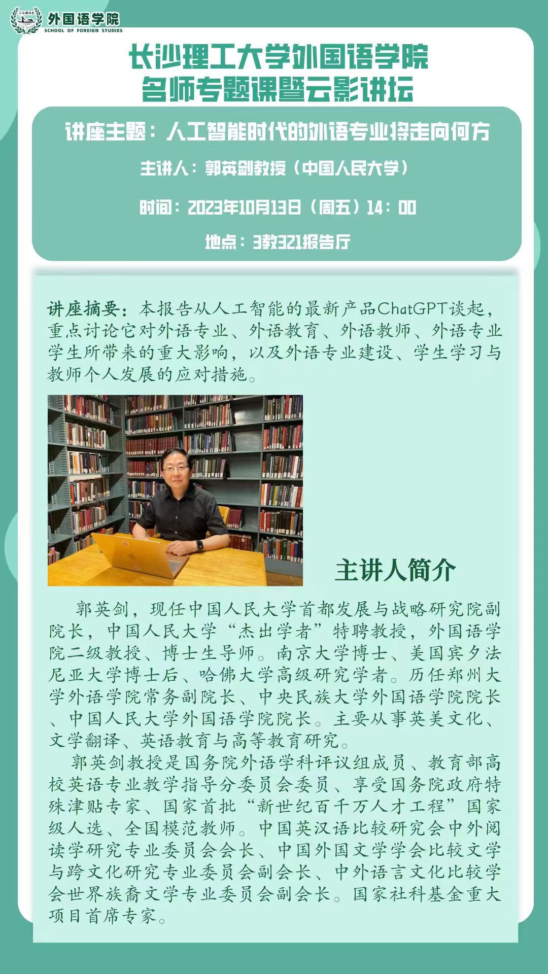 外国语学院名师专题课暨云影讲坛-人工智能时代的外语专业将走向何方