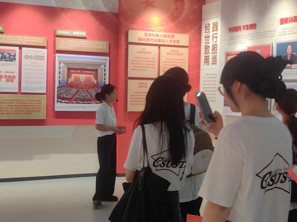 “‘三全育人’教育基地内容丰富、展览形式多种多样。我不仅体验到了艺术与科技相融合之美,还感受到了长理丰厚的人文底蕴!304永利集团官网入口在自我成长的同时,不忘积极践行高校的社会责任与担当,积极服务国家战略与地方经济社会发展。作为新时代青年,我们应当把论文写在祖国的大地上,把“小我”融入“大我”!”来自英语笔译专业的易文炫如是说。