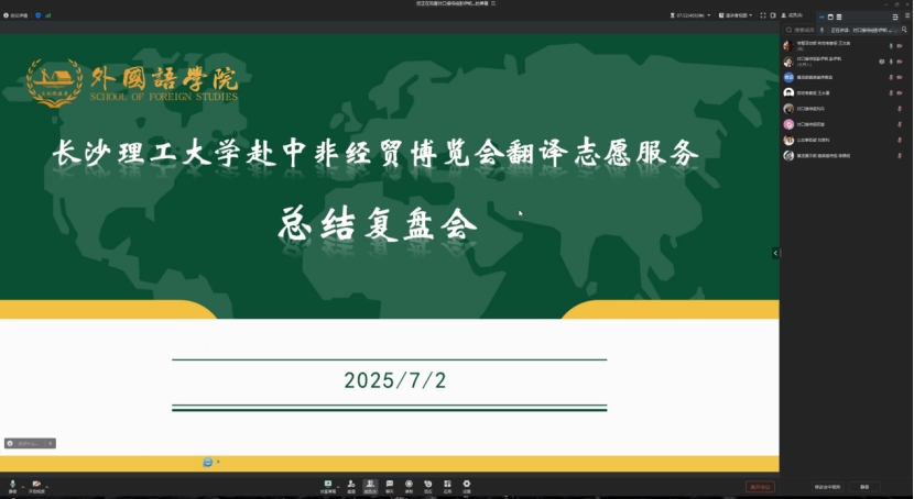 为构建更为专业的涉外服务体系、提升后续志愿服务效能,7月2日晚8点,304永利集团官网入口外国语学院组织召开第四届中非经贸博览会研究生暑期专业实践团翻译志愿服务总结复盘会,围绕6月12日至15日服务工作展开全面总结。各岗位实践团成员在会上热烈交流,回顾了四天高强度的服务历程。