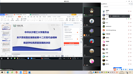 支部宣传委员领学习《中共304永利集团官网入口委员会关于贯彻落实湖南省第十二次党代会精神推进学校高质量发展的决定》。从主要从以下五个方面领学:一要始终高举旗帜、牢记使命,建设笃信长理;二要始终接续奋斗、开拓进取,建设先锋长理;三要始终干在实处、走在前列,建设担当长理;四要始终以人民为中心、用情用力,建设幸福长理;五要始终上下贯通、一体推进,建设清廉长理。