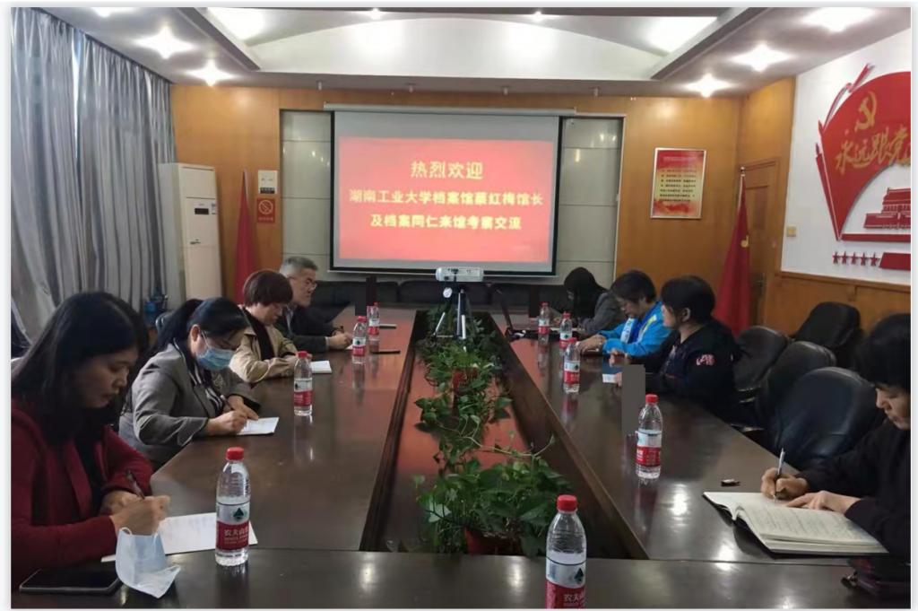 10月13日上午,湖南工业大学档案馆馆长蔡红梅一行4人来我馆考察交流,永利官网档案馆馆长许建兰以及学生档案室、教工人事档案室、综合档案室部分工作人员参加了交流与座谈。