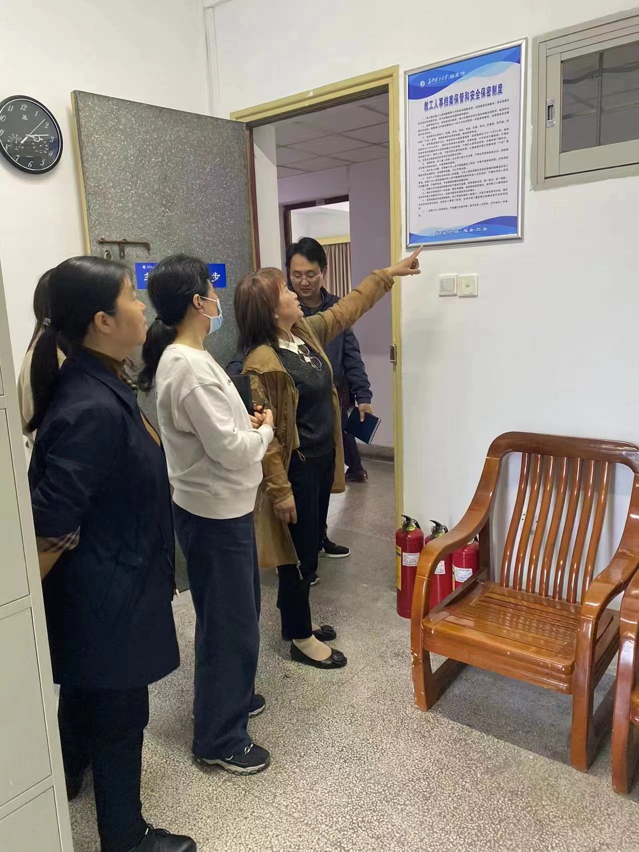 会后,档案馆保密工作领导小组成员进行了档案安全保密自查自纠工作和馆内消防安全检查。
