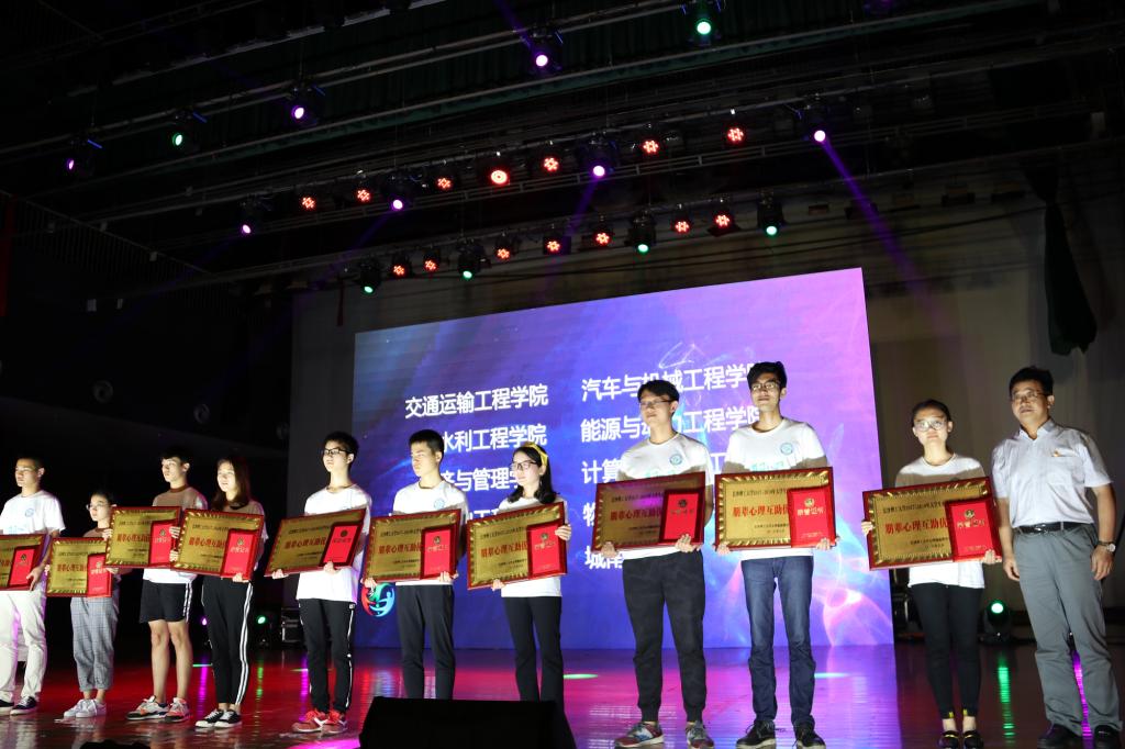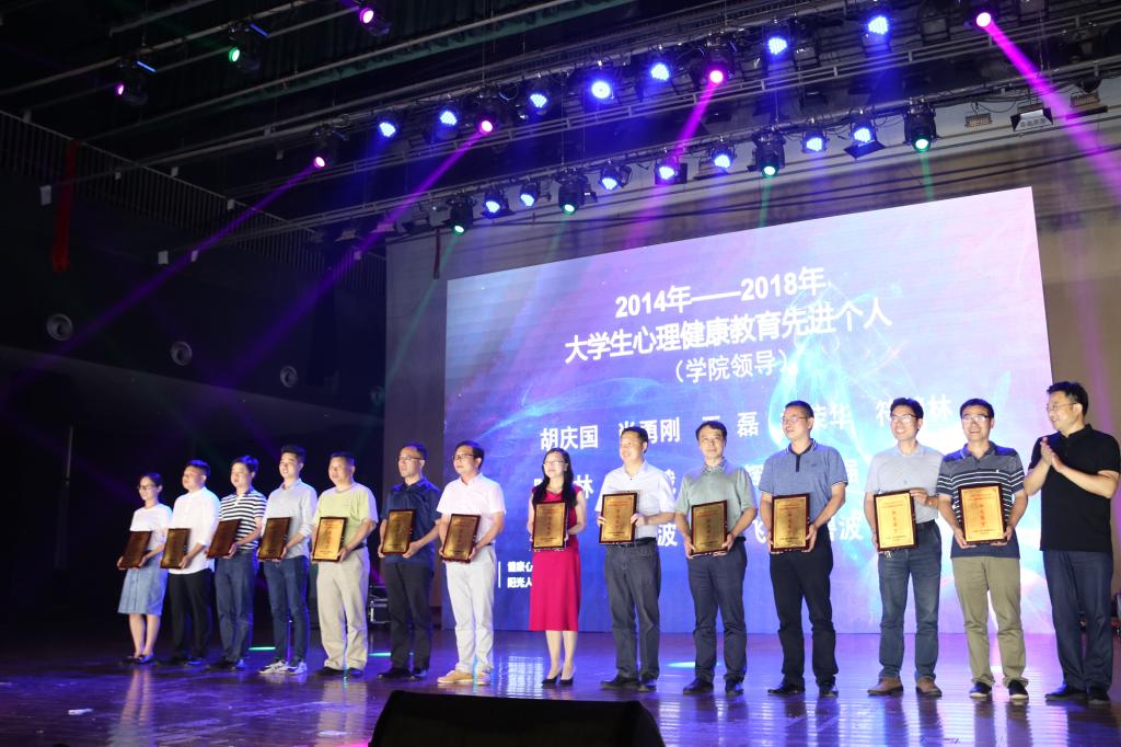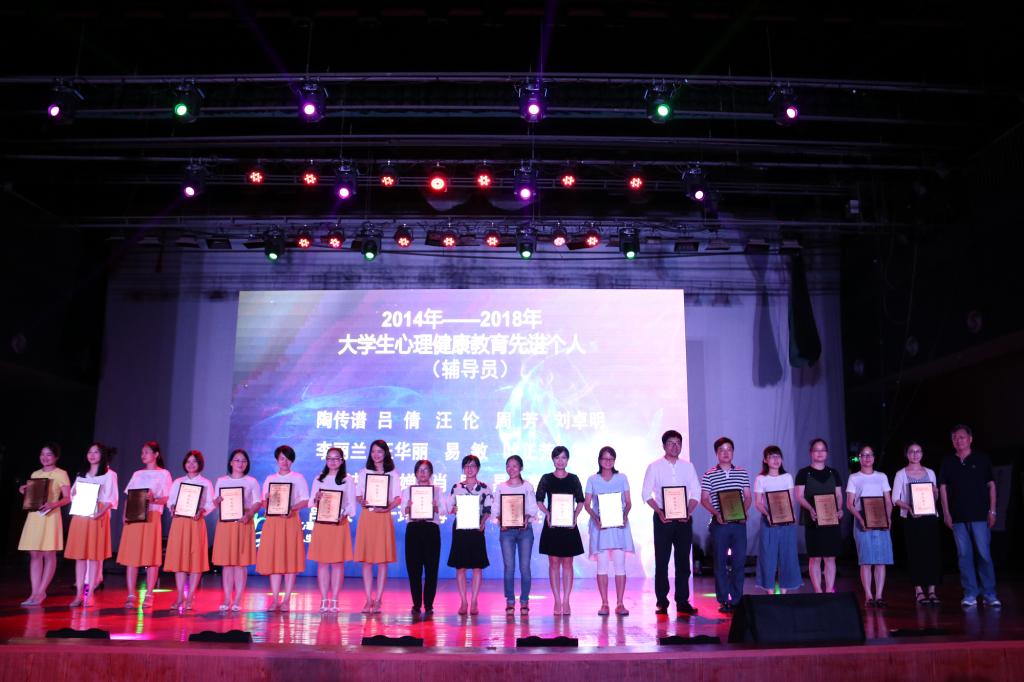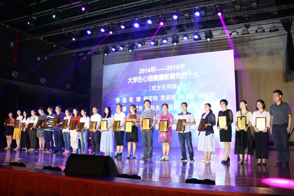 晚会上,授予10个学院“2014-2018年304永利集团官网入口大学生心理健康教育工作优秀集体”称号;授予13名二级学院领导、24名班主任和研究生导师、20名辅导员“2014-2018年304永利集团官网入口大学生心理健康教育工作先进个人”称号;同时还授予10个学院的朋辈心理互助组织“阳光团队”称号,107名朋辈心理互助员“阳光朋辈”称号。