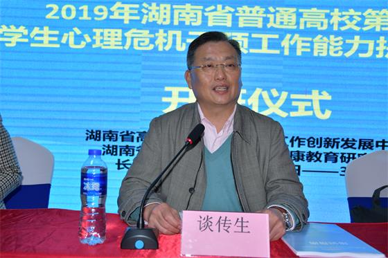 湖南省高校大学生心理健康教育研究会会长、304永利集团官网入口副校长谈传生,湖南省教育厅思政处正处级调研员陈解莅临开班仪式并发表讲话。会长谈传生回顾近年我省心理危机干预工作的实际情况,总结省内各高校在心理危机干预工作中面临的困境和困难,指出建立一支专业化程度高、业务能力强的专职教师队伍,是推动危机干预工作专业化的迫切需求,通过做好心理危机干预工作,为学生构筑起“承重墙”,让他们健康成长成才,将来走向社会能够经得起各种考验。正处级调研员陈解在讲话中对一线心理健康教育专职教师在心理危机干预工作中面临的压力表示理解,提出当前高校大学生心理危机干预工作面临的严峻挑战,希望老师们把学到的理论知识运用到具体的工作中去,在工作实践上有新突破。开班仪式上湖南师范大学蒋佩老师作为学员代表进行发言,她认为本次培训内容专业性强,目标明确,在当前高校危机干预工作的严峻工作形势下,参加培训可谓雪中送炭,希望在培训中能学习有效的危机干预知识,提升工作技能和服务水平,能为百万学生的成长成才继续坚持前行。