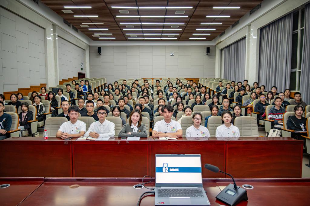 陈璐莎以“共青团陪你度过青春岁月——做有为有味的学生干部”为题进行授课。她从四个方面就“如何成为一名合格的学生干部?”展开分享。第一、有谓才有位。她指出,学生干部应意识到自身的责任和担当,努力做到老师放心、同学认可、自身满足。第二、有位后有为。学生干部应有更高的站位、更广阔的胸襟、更强的政治意识和大局意识。第三、有为才有味。她强调,学生干部们需将“要我做”转变为“我要做”,在工作中多思考、多创新,不做“工具人”。第四、有位与有畏。学生干部需对团学工作心怀敬畏之心,规范自身行为。