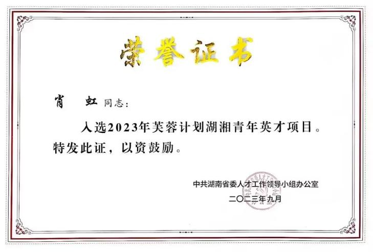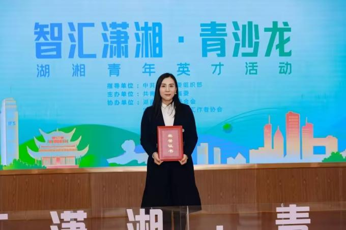 12月8日,由省委组织部指导,团省委主办,省青联、省青科协、团长沙市委协办的“智慧潇湘·青沙龙”湖湘青年英才活动在长沙举行,为入选2023年芙蓉计划湖湘青年英才项目人文社科、文化创意、创业三个类别的74名青年颁发奖杯和证书。永利官网设计艺术学院副教授、硕士研究生导师肖虹与交通运输工程学院博士生黄旺入选2023年芙蓉计划湖湘青年英才项目。