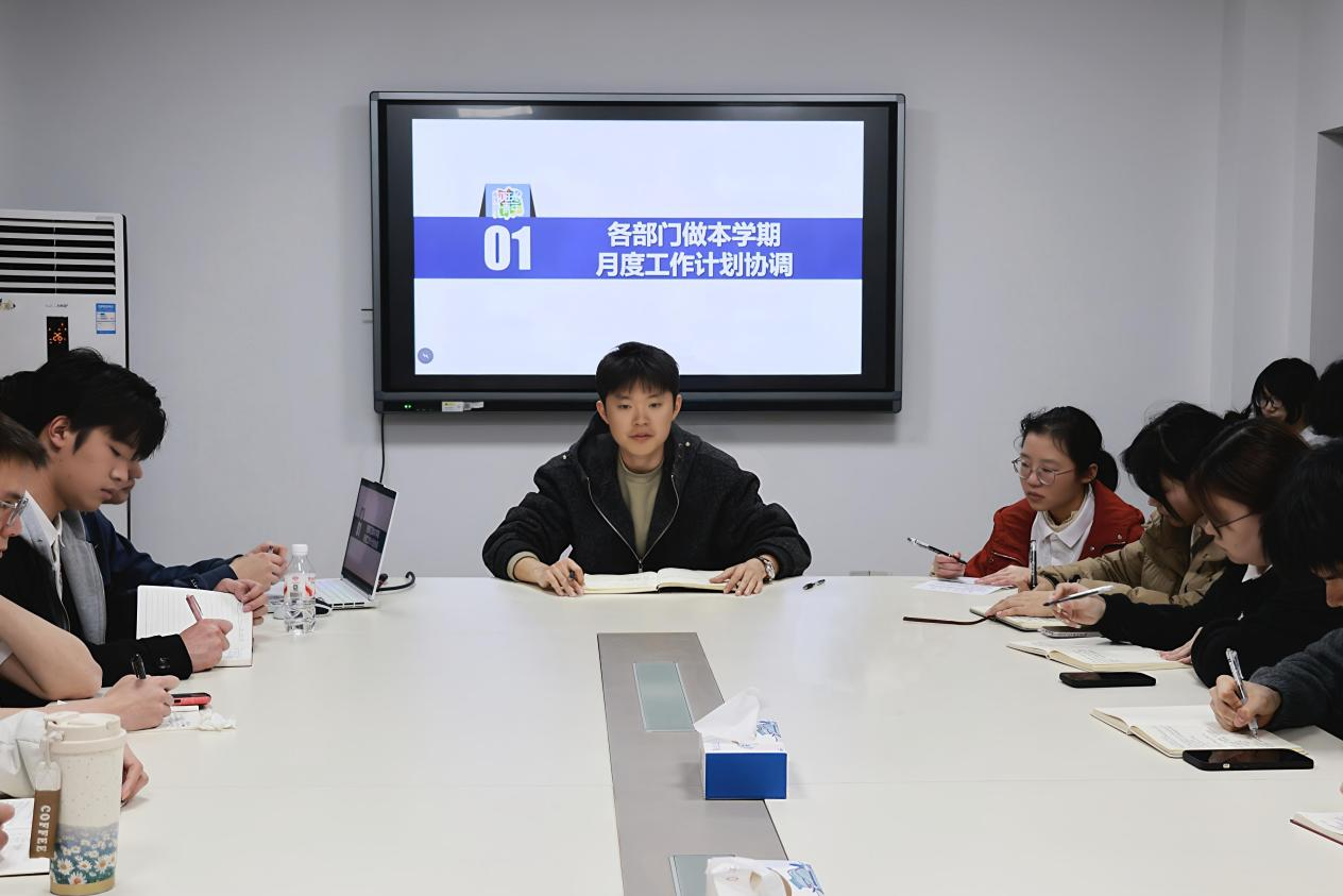 会议伊始,各部门主要负责人围绕本学期重点工作开展月度工作计划汇报,明确任务分工,确保新学期各项工作有序推进。随后,校学生会主席团成员就本学期月度工作计划进行协调及补充说明。