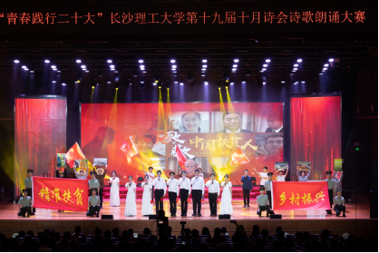 诗会在艺术学院《楚音不绝 求索之路贯长河》的朗诵声中拉开帷幕,激昂的吟诵、壮丽的诗句着力描绘了屈原深固难徙的爱国情怀和上下求索的实干精神;计通学院《铮铮铁骨魂,尽忠报国意》以古今对话方式阐述不同时代青年的尽忠报国,歌颂岳飞等一众征战沙场、死而后已的爱国志士;城南学院《亘古男儿一放翁》深情勾画了陆游虽困顿仍怜民之苦,在生死与颠沛的交错中仍心系国定民安的人物形象;文新学院《青春》将我们带入李大钊等革命先驱的视角,展现战火纷飞时期的文人风骨;经管学院《一念救苍生,百年新征程》追寻共产党先驱的足迹,礼赞伟大领袖毛泽东的人民情怀;能动学院《燃灯校长》讲述了张桂梅校长对教育事业的无私奉献,赞扬以沧海一粟汇成滚滚洪流的平民英雄;水利学院《走好脱贫奋斗路,共赴振兴新生活》以驻村书记黄文秀的感人事迹致敬新时代砥砺前行,不断拼搏的奋斗者;土木学院《桥何名欤?曰:奋斗!》歌颂茅以升造桥、炸桥之大义,解读“生逢其时恰青春,工程报国洒热血”的历史使命;国际工学院《丝路迢递厚德,育人相续星火》中外学子走进三全育人教育基地共话长理国际化办学过往,呼唤青年共担使命传承丝路篇章;诗会以阳光艺术团的舞蹈《青山远黛》作为尾声。