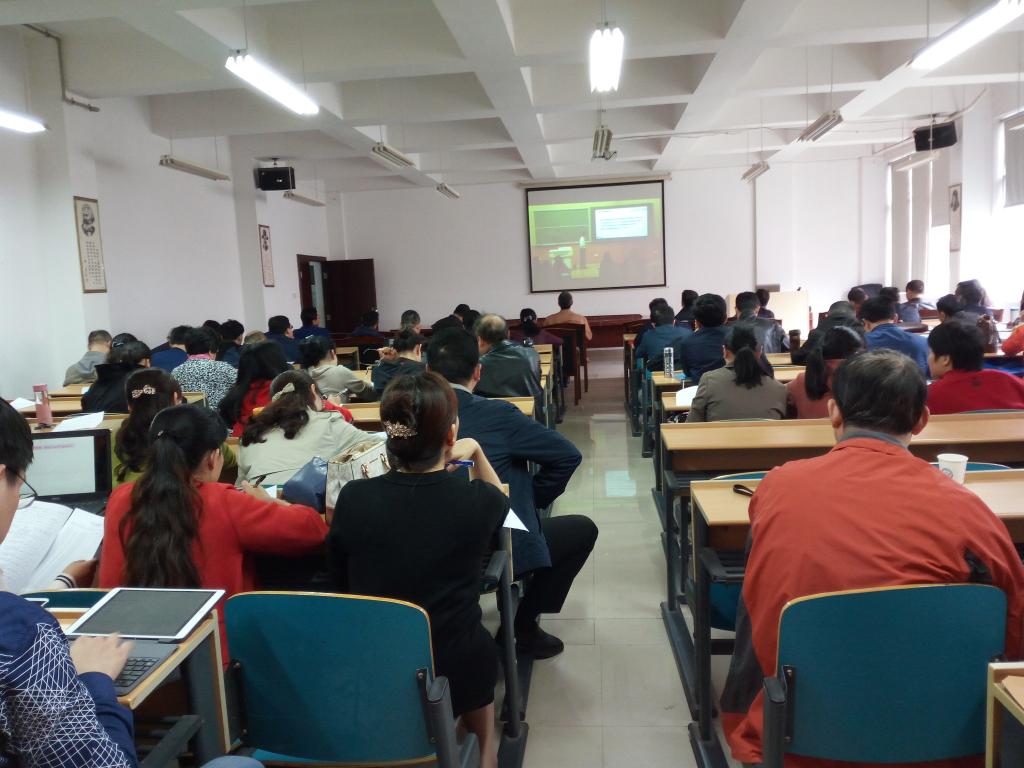 郭建鹏教授主要从事课程教学论和教育心理学研究,通过实证研究探讨学习的规律及教学方法的改进,在信息技术与教学方法进行深度融合方面有自己独到的心得。此次讲座中,他以一位普通教师的身份向永利官网教师分享了自发研究、实践翻转课堂,借助“雨课堂”技术改变教学方法的过程。他细致讲解了O-PIRTAS翻转课堂教学法,即以教学内容和目标、课前准备导入、课前视频教学、课堂视频回顾、课堂知识测试、课堂活动设计、课堂总结提升七大步骤为核心环节的教学方法,助力教师转变为“以学生为中心”教学观念。他在讲座中提到“没有有效学习的课堂就是浪费时间、浪费生命”引起了在座教师的强烈共鸣。他通过展示“翻转课堂+雨课堂”与传统课堂在课堂互动、学生注意力、学习效率及学习成绩等方面的试验结果对比,示范“雨课堂”通过课堂实时在线互动,让手机从学生的“低头工具”变为学生积极参与学习的“抬头利器”,激起了老师们浓厚的学习兴趣,在讲座中引发老师们连连发问。