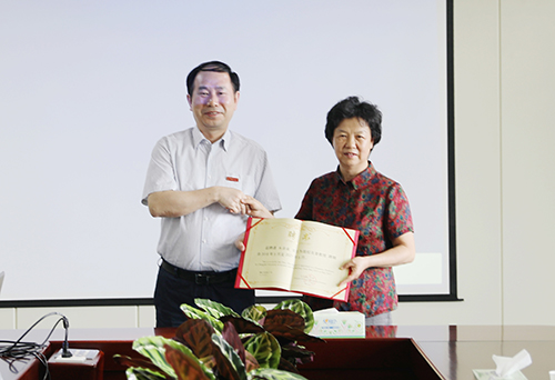 杨华峰介绍了朱蓓薇院士的主要学术成就。黄立宏为朱蓓薇院士颁发了聘书。