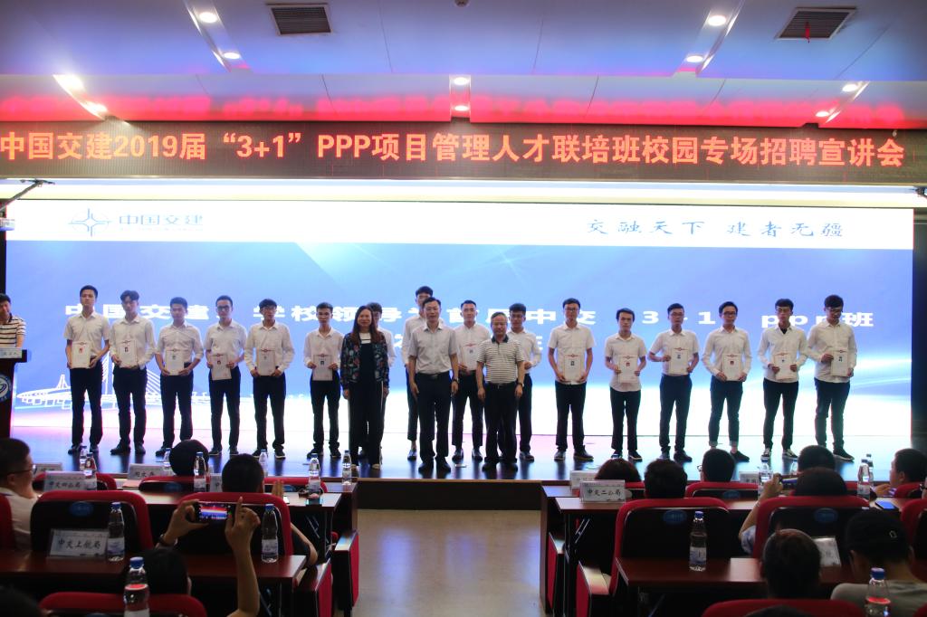 中国交通建设股份有限公司2019届“3+1”项目管理人才联合培养班校园招聘会在永利官网举行。此次活动由中国交通建设股份有限公司主办,中交第二航务工程局有限公司和永利官网共同承办。