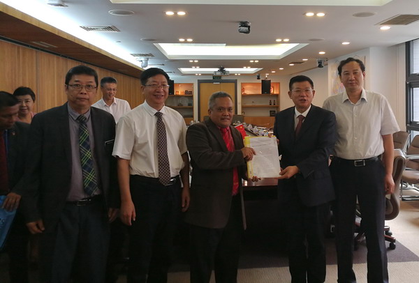7月23日,校党委书记付宏渊、副校长蒋昌波,沙巴大学(Universiti Malaysia Sabah)常务副校长Rasid Mail、校长助理Marcus Jopony等一行12人赴国家汉办(孔子学院总部)汇报沙巴大学孔子学院筹办工作,并向国家汉办递交了合作共建沙巴大学孔子学院的申报书。国家汉办党委书记、孔子学院总部副总干事马箭飞接待了付宏渊一行。