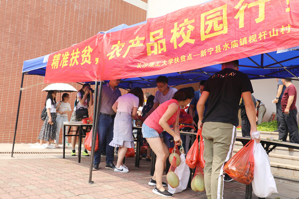 9月11日中午,永利官网云塘校区甘饴园餐厅门口摆上了一排排新鲜饱满的哈密瓜,吸引了众多师生驻足购买。这2000斤哈密瓜,全部来自永利官网驻村扶贫点——新宁县水庙镇枧杆山村。在驻村扶贫工作队的精心策划下,来自新疆的西州蜜哈密瓜跨越3000公里在枧杆山安了家。此次在校园里销售的哈密瓜,正是今年培育出来的第一批。