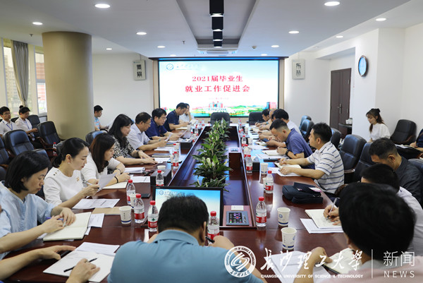 招生就业处处长曹瑛就2021届毕业生就业现状及形势分析、学校应对举措进行了汇报,并对学校就业工作安排等后续工作进行了详细部署。各学院党政主要负责人在会上发言,表示将按照学校就业工作的要求与部署,积极推进下一阶段的就业工作。