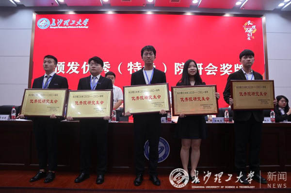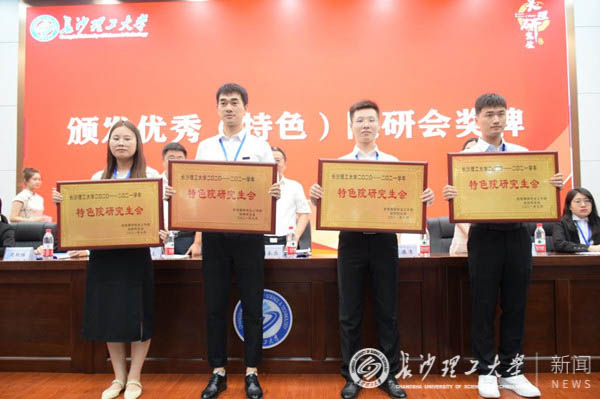 会议现场,与会领导对获评2019-2020学年度优秀(特色)院研究生会的单位进行了颁奖,并为第十四届校研究生会成员颁发了任职证书。