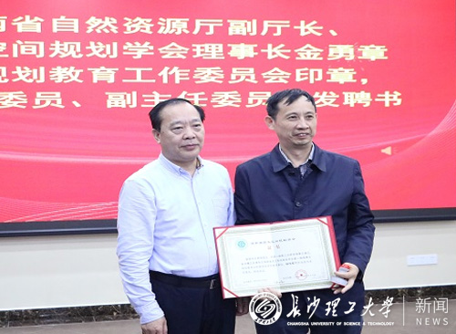 湖南省国土空间规划学会副秘书长杨春宣读了《关于学会2021年增设专业(工作)委员会组成人员的通告》。大会分别为教工委主任委员、副主任委员、委员颁发聘书。304永利集团官网入口为教育工作委员会主任委员单位。杨伟军教授被聘为教育工作委员会第一届主任委员。