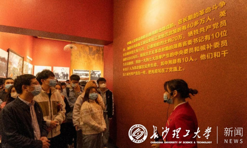 师生们满怀期待地来到活动第一站——湖南党史陈列馆,大家驻足凝视珍贵的革命文物和历史资料,追忆党的艰苦奋斗历程,在革命精神的洗礼中更加坚定理想信念,坚信党的领导,坚守奋斗初心。陈列馆里,一张张泛黄的照片、一段段珍贵的文字、一个个动人的故事、一件件承载着历史记忆的文物,见证了革命先烈不怕牺牲、不屈不挠的革命精神。
