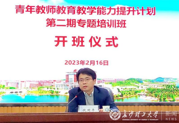副校长钱国平在开班仪式上讲话,他鼓励青年教师们通过学习尽快掌握先进的教学理念、教学方法等,多和有经验的老师交流,握紧教鞭,站稳讲台,并加强作风建设,在全校形成良好的学风和教风。同时也建议教务部门深入调研,以提升“青年教师教育教学能力提升计划”的科学性、系统性和有效性,为青年教师提供更好的平台和更多的机会。