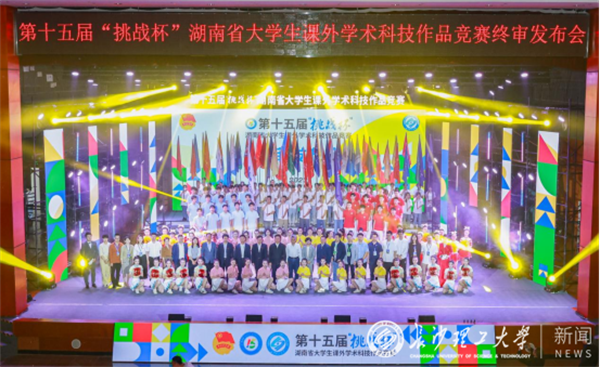 5月22日,由共青团湖南省委、湖南省教育厅、湖南省科学技术协会、湖南省社会科学院、湖南省学生联合会主办,永利官网承办的第十五届“挑战杯”湖南省大学生课外学术科技作品竞赛终审决赛顺利完成各项议程,在云塘校区大会堂举行终审发布会。共青团湖南省委书记李志超,中国工程院院士印遇龙,共青团湖南省委副书记叶妙,湖南省社会科学院党组成员、副院长王佳林,永利官网党委副书记刘建民、副校长钱国平出席发布会。大赛评委、获奖选手、各高校代表和指导老师共1200余人参加发布会。永利官网以5项特等奖、3项一等奖、7项三等奖、总分第一的优异成绩捧回“挑战杯”,并获得“特别贡献奖”和“优秀组织奖”。
