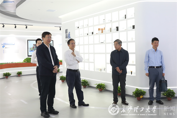 在公路工程实验中心展厅,王瑰曙一行详细了解了公路养护技术国家工程实验室在公路养护技术的应用研究、产品设备开发、设计验证、标准研究、人才培养、技术推广和服务等方面的成果,特别是在路基、路面、养护、道路绿色化等方面进行的刻苦攻关,取得的特殊土路堑边坡灾变防控技术、特殊土路基修筑与路基拓宽技术、长寿命路面建养技术、道路绿色低碳化更新技术等代表性成果。王瑰曙就智慧建养、智能建造、精细化养护等进行询问并指出,该实验室对国家重大工程的建设与公路养护发挥了积极的科技支撑作用。他希望研究中心能够更好地立足湖南,持续推进关键核心技术攻关,为助力实现湖南“三高四新”美好蓝图贡献“长理力量”。