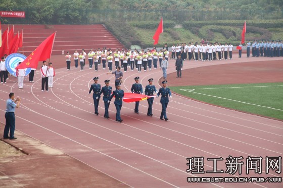 上午8:30,伴随着雄壮的《运动员进行曲》,在鲜艳的国旗和校旗带领下,彩旗队、仪仗队、鲜花队以及各运动员代表队组成整齐有序的方阵,迈着矫健的步伐,喊着激昂的口号,昂首步入会场。