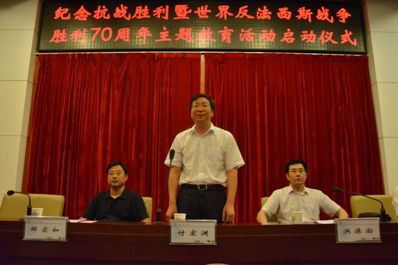 6月30日下午,永利官网“纪念中国人民抗日战争暨世界反法西斯战争胜利70周年群众性主题教育启动仪式暨签名活动”在图书馆报告厅举行。校党委书记付宏渊、党委副书记洪源渤、副校长邹宏如以及职能部门和各学院相关负责人参加活动。校学生会、学生社团联合会和各学院学生代表共计300余人参加。启动仪式由学工部部长黄自力主持。