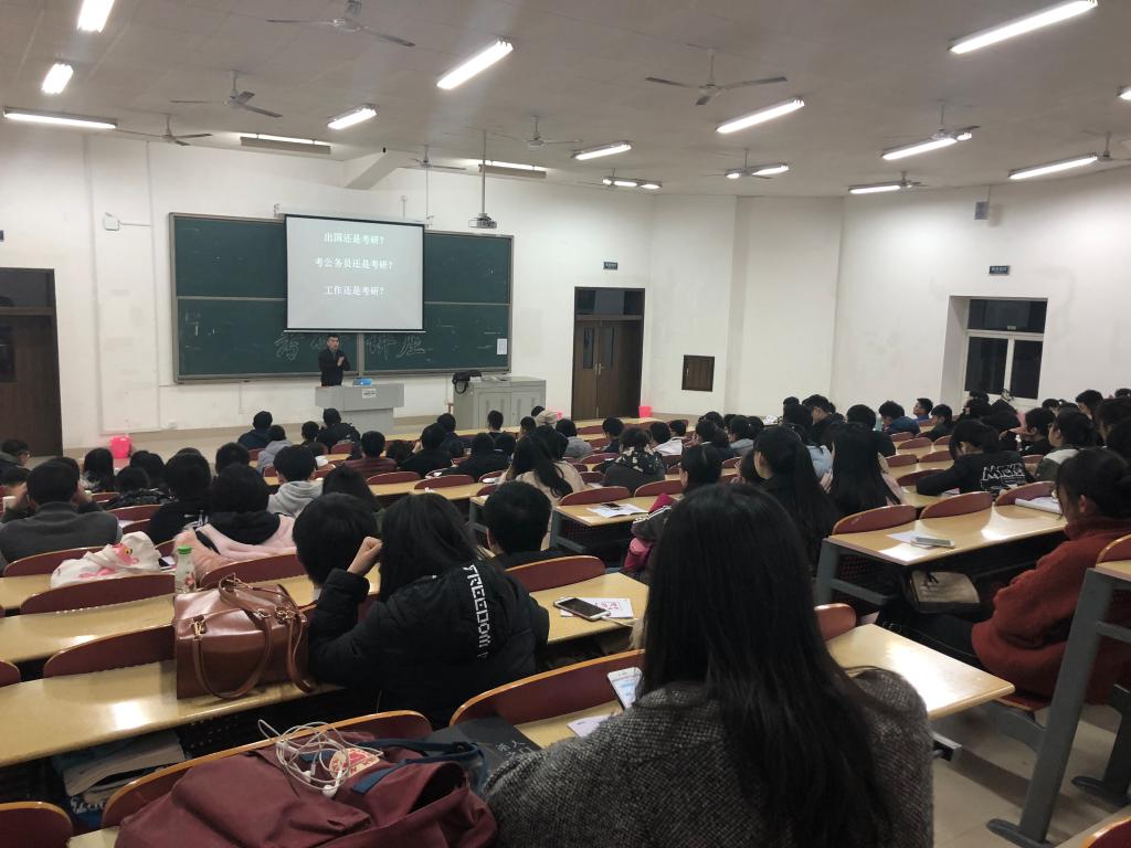 为消除大学生考研焦虑,增强考研信心,提高对考研的综合性认识,3月22日晚,国际学院大学生学习与发展中心于综合教学楼B102举办考研规划讲座。长沙新东方国内部副总监胡彦博老师主讲,来自不同学院的200多名学生参加讲座。