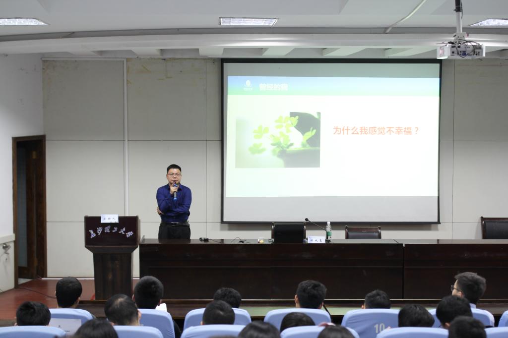 田双喜首先从“幸福人生”这个话题入手,和研究生谈职业规划。他指出:现阶段大部分研究生处理问题时,往往只“关注点而忽略面”,缺乏战略性的思考,看似勤奋,最后却踌躇不前一无所获。他在讲座中提到,同学们将面临一个全新的挑战,经历“看不见、看不起、看不懂、来不及”4个阶段。面对这一挑战,他指出,首先,研究生应当勇于接触新事物,学会肯定自己,增强自己的幸福感。其次,新时代带来一系列的变化,预示着机遇与挑战并存,作为研究生要时刻保持危机感,提高跨界思维能力,不断充实自己,才能不被社会淘汰。在选择职业这个问题上,他建议研究生要抛弃功利化的思想,树立正确的价值观。田双喜用生动形象的“竞拍”互动游戏引导大家直面自己最真实的想法,看清自己的价值观。他根据自身多年的就业指导经历总结出,华丽的简历不一定能打动HR招聘人员,只有内心深处的价值观才更能体现求职者未来发展的能力与格局。