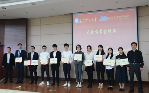 天健奖学金由天健会计师事务所出资设立。该事务所成立于1983年12月,是由我国一批资深注册会计师投资创办的全国大型专业会计中介服务机构,综合实力位列内资所前三,大中华区前五,全球排名前二十位。为支持教育事业发展,共同培养特色人才,天健会计师事务所秉承“专业报国、服务社会”的宗旨,积极履行社会责任,捐赠10万元在永利官网设立“天健奖学金”,用于奖励经济与管理学院大四年级会计学和财务管理专业品学兼优的本科生。经过个人申报、公开答辩、专家评审等环节,本次首届“天健奖学金”评选出10位获奖学生。