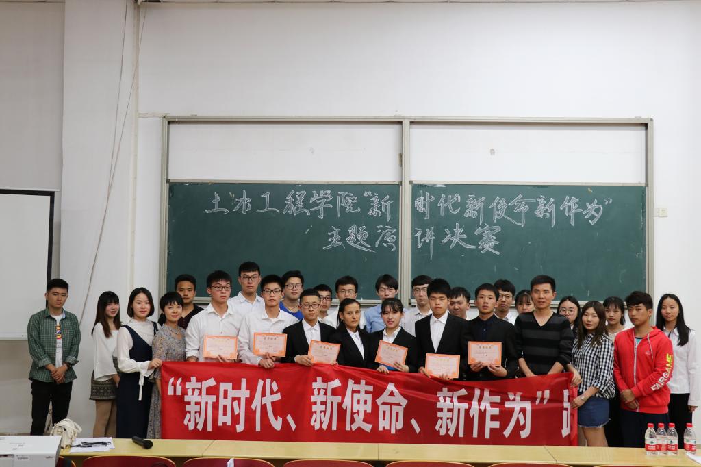 根据学校《关于开展新时代,新使命,新作为主题教育活动的通知》精神,扎实推动党的十九大精神的学习宣传贯彻,切实提高学生思想水平、政治觉悟、道德品质、文化素养,把全体学生培养成具有坚定的马克思主义信仰的底色亮、特色明、勇担当、勇创新人才,422日晚,由土木学院组织部和文娱部共同举办的新时代,新使命,新作为践行十九大主题演讲比赛决赛在工科楼二A302举行。
