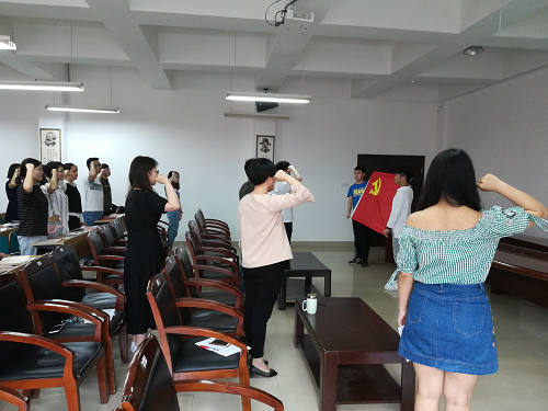 首先,全体党员通过PPT回顾从入党积极分子成长为一名党员的点滴历程,追忆初心。接着,汪功伟对全体党员同学顺利完成学业表示祝贺,对其在校期间所付出的辛勤劳动和对学院发展作出的贡献表示感谢;要求全体2018届毕业生党员站好最后一班岗,积极发挥先锋模范作用,做好各项服务工作,保障同学们安全、文明离校;希望同学们养成终身学习的习惯,不断增强自身责任感与使命感,用奋斗者的姿态书写人生华章。随后,学生党总支组织委员李昊昱宣读《化学与生物工程学院2018届毕业生党员专题教育活动方案》。优秀党员代表邹艾玲发言,她回顾了个人成长经历,对学校的培养与老师的教诲表示感谢,承诺将站好最后一班岗,以崭新的姿态面向新的生活,以实际行动回报社会。之后,全体成员重温入党誓词,不忘初心,坚定信念。