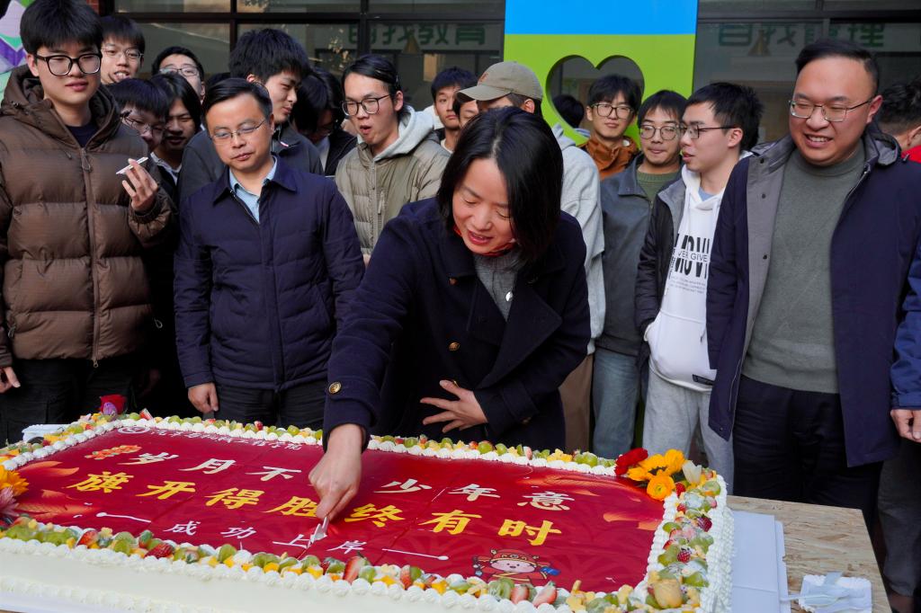 “岁月不负少年意、旗开得胜终有时。”活动现场,学院精心准备了一块长达2.3米、宽0.8米的巨型蛋糕,满载着学院老师对考生们的祝福与期待,象征着学子们在考研路上的甜蜜与成功。在轻松愉快的氛围中,师生们共同分享蛋糕,互赠温暖的祝福,为即将到来的考试注入满满信心与力量。