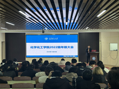 12月20日下午,化学学院在工科三号楼A307会议室召开了2022级本科生年级大会。会议对在学业、学科竞赛中的优异成绩的同学进行了表彰,同时分析总结了学风建设中的不足,并为同学们未来的学习和发展提供了指导与建议。会议由年级辅导员张航主持,学院党委副书记李家春出席会议。