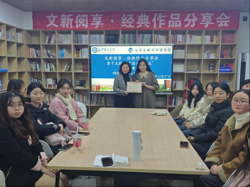 12月27日晚,文新学院第十五期“文新阅享·经典作品分享会”在金盆岭校区九教317师生发展中心举行。中文系教师王福雅作为特邀嘉宾出席。