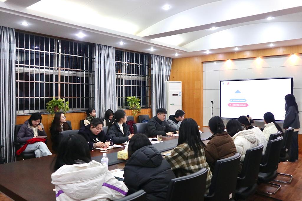 为加强各部门间工作交流,展示研会成员的个人风采,12月30日晚18:30,经管学院2024年度研会之星评选暨研究生干部培训班总结会在经管大楼307顺利举行。学院党委副书记汪功伟,研究生辅导员肖翠、周路路,研究生会主席及部长担任评委,答辩会由研会主席朱潇湘主持,共计18位干事角逐本次评选活动。