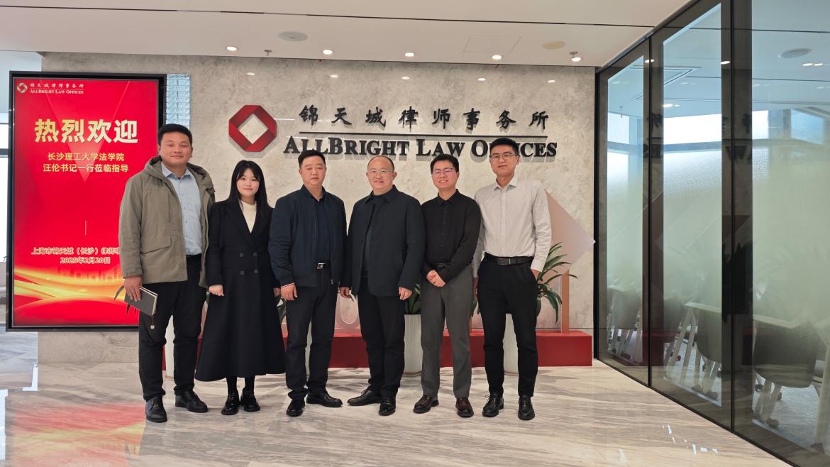 在上海市锦天城(长沙)律师事务所,高级合伙人谭卫利、律师陈浩和周寰奇对汪伦一行的到访表示热烈欢迎,双方就法学教育与实践融合、人才培养与毕业生高质量就业进行了充分的交流。
