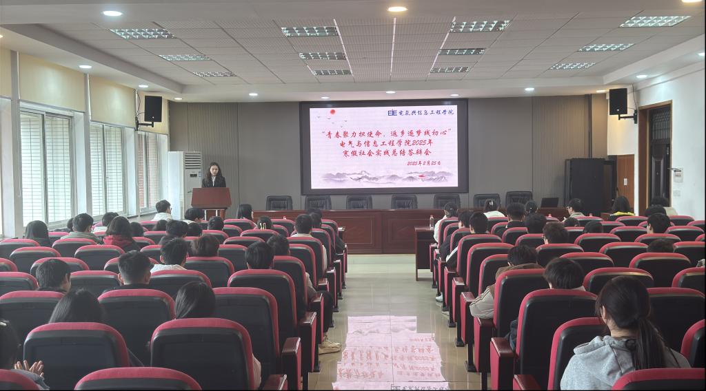 近日,电气学院2025年“青春聚力担使命,返乡逐梦践初心”主题寒假社会实践活动总结答辩会于云塘校区工科一号楼B503举办。院团委书记田孟萍、学工办赫连岚馨、曾佳慧、杨泽言以及14位实践团队、个人代表参加,近百名师生到场观摩学习。