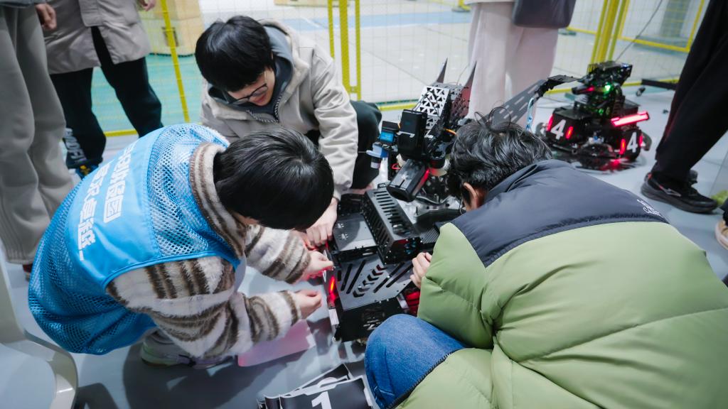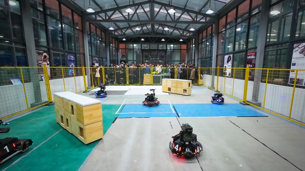 RoboMaster机甲大师赛作为一项综合性机器人对抗赛事,涵盖了机械设计、电子控制、人工智能等多学科领域。本次四校友谊赛以开放式技术验证为核心,聚焦智能机器人系统的模块化开发与协同创新。各校代表队基于RoboMaster技术框架,分别展示了在机械传动优化、嵌入式系统开发及多机通信协议等领域的特色成果。联合赛事现场呈现出产学研深度融合的生动图景。红蓝双方在对抗演练中同步开展技术调试,操作团队通过专业软件实时监测机器人运动轨迹与机械臂动态参数,针对性地优化控制算法与动力分配策略。步兵机器人的战术突进、英雄机器人的精准打击与工程机器人的快速支援,无一不展现了当代大学生卓越的科技创新能力和实践能力。