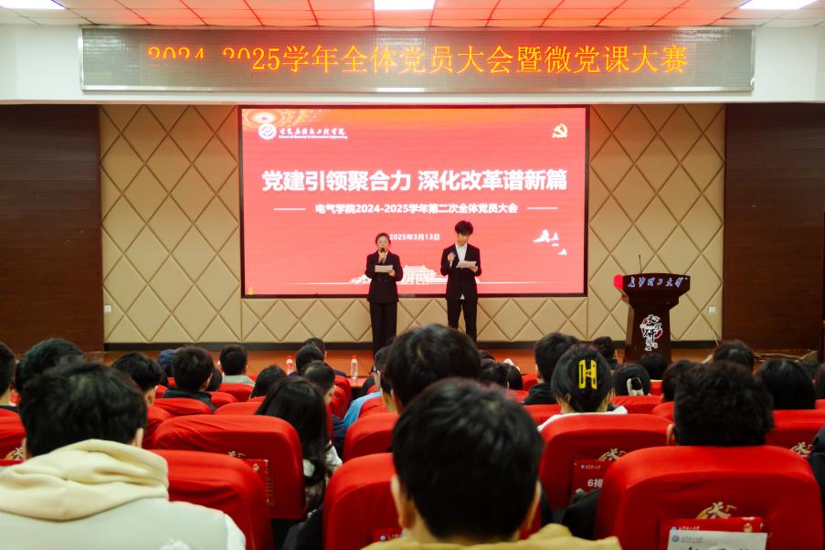 3月13日晚,电气学院在文科楼A200召开2024—2025学年第二次全体党员大会暨微党课大赛。学院党委书记丁丹,党委副书记、副院长周巍,关工委常务副主任罗玉雄,党建辅导员熊文娟及全体党员参加。