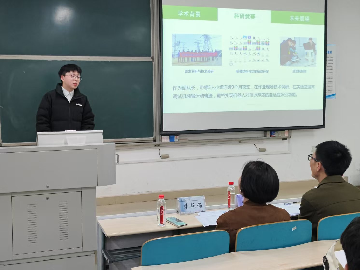 答辩伊始,主持人向参会人员简要介绍集团基本情况以及答辩流程与评分细则。“湘能楚天电力专项奖学金”分设服务奉献奖、学习标兵奖、学习进步奖、科技英才奖、文体特长奖以及优秀科研团队、优秀寝室、优秀学生团队奖。每位候选人按照答辩顺序依次上台,分别从学习成绩、社会实践、学科竞赛、志愿服务等方面,结合所申报奖学金类别,对个人及团体取得的成果,团队成果、风采,未来展望进行全方位、多角度的展示。评委们根据展示内容进行提问和点评。候选人们沉着应对,凭借丰富的知识储备和清晰的思维逻辑进行回答,充分展现了长理电气学子的风采和自信。