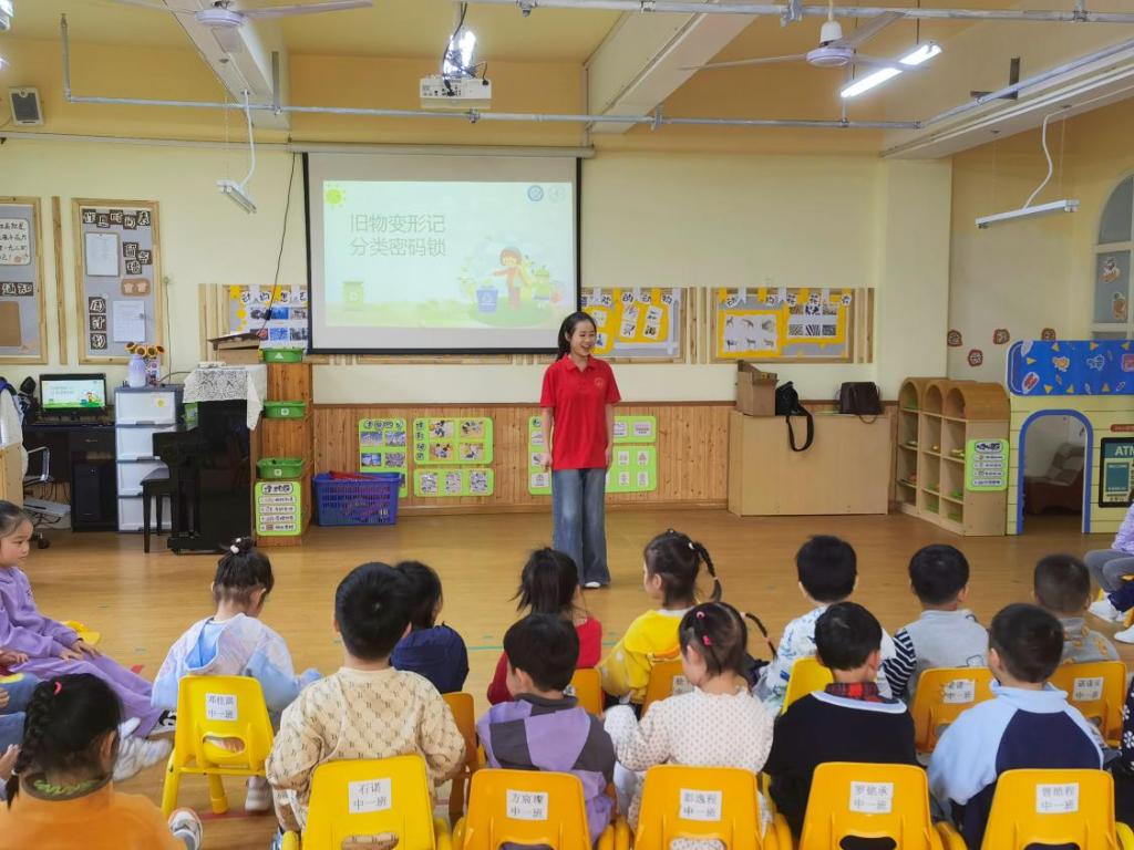 活动现场,志愿者胡湘茹用浅显易懂的语言向小朋友们介绍了垃圾分类的概念、必要性和具体方法,并举实例讲解了废旧物品的可循环利用性。接着,互动小游戏和知识竞赛将活动气氛推向高潮,孩子们争先恐后地举手回答问题,分享自己对垃圾分类的理解。“红色垃圾桶是用来收集有害垃圾的,比如过期药品”“塑料盒是可回收物的一种”……