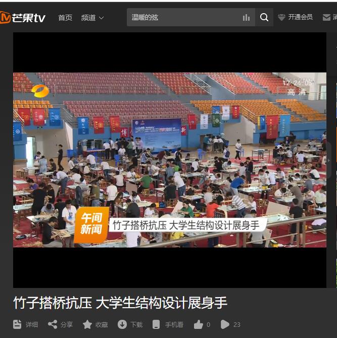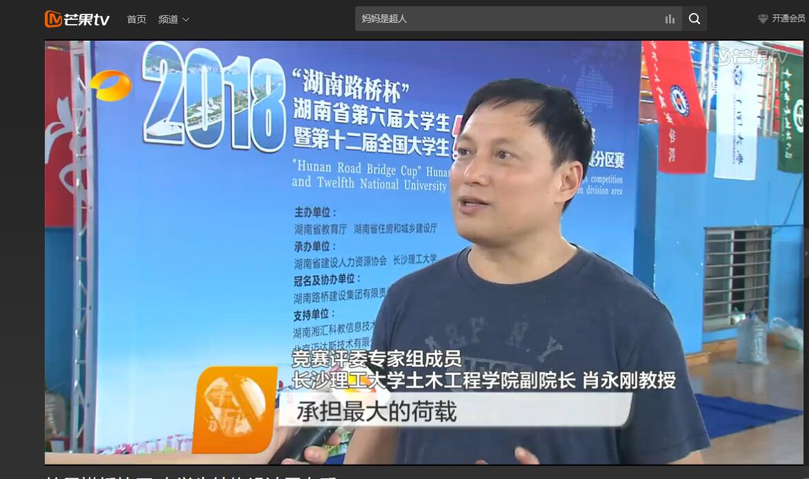湖南卫视5月14日午间新闻对5月11—13日在永利官网举行的“湖南路桥杯”第六届湖南省大学生结构设计竞赛暨第十二届全国大学生结构设计分赛区竞赛进行了报道。